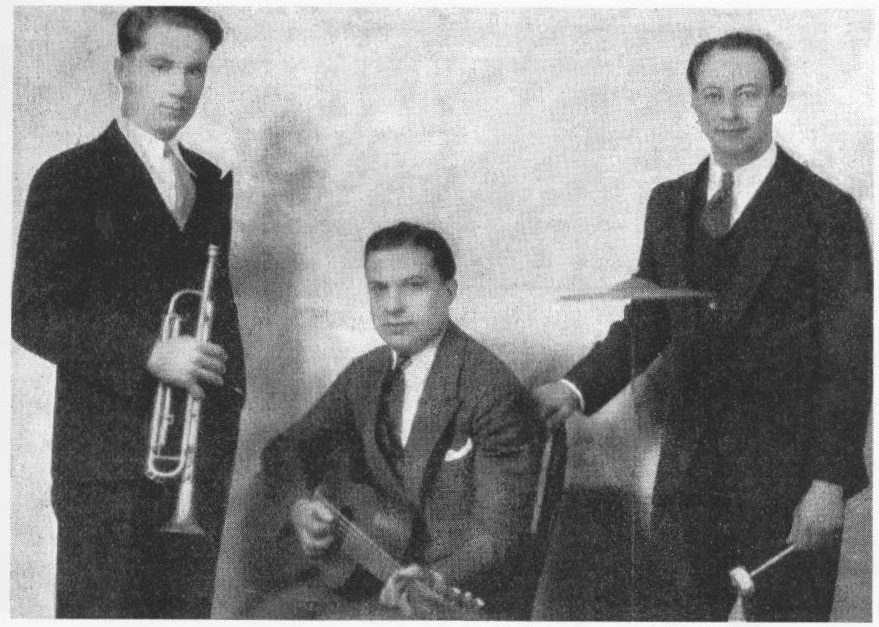 Red Nichols-trumpet, Eddie Lang-guitar, Vic Berton-percussion, c. 1926.